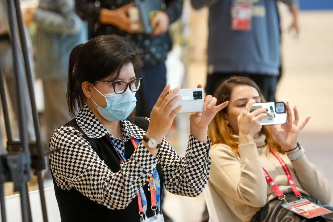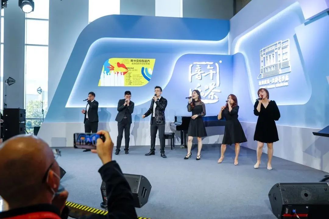 第四届进博会的第五天,迎来了第22个记者节,听完由AHA人声乐团带来的“阿卡贝拉在远方——古诗词阿卡贝拉专场”,下午14:30,“音乐午茶”为媒体朋友们送上了精心准备的富有音乐厅特色的专属音乐礼物——“MUSIC”口罩礼盒套装以及音乐厅专属徽章。