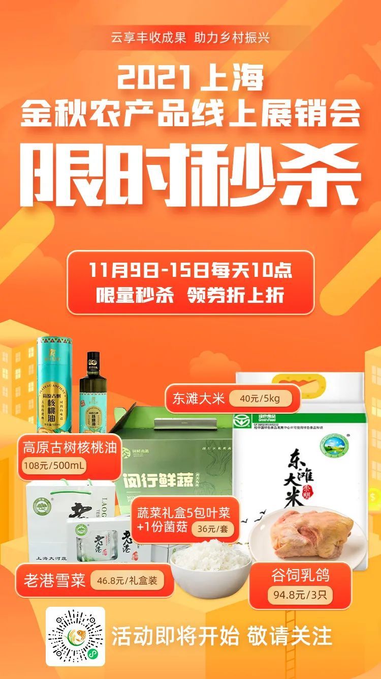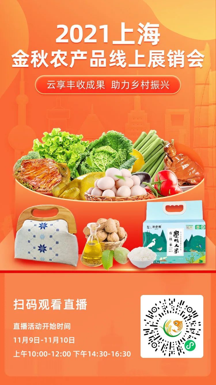 11月9日-10日,2021上海金秋农产品线上展销会直播活动将在鱼米之乡平台火爆登场。此次直播为期两天共四场,来自上海16家优质企业将带来上海地产优质食味稻米、当季时令蔬果、畜禽产品、非遗美食及手工制品等,满足市民对农产品的高品质消费需求。