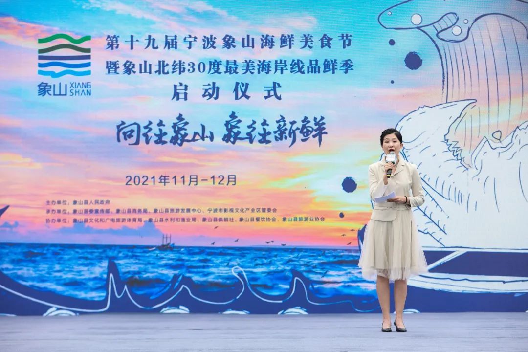 象山县人民政府副县长张微燕在致辞中表示,自2003年举办首届象山海鲜美食节以来,象山县以海鲜为媒,借节造势,充分展示象山海鲜的独特魅力,使其成为象山城市对外推广的一张靓丽名片。今年以来,精心策划了“踏沙季”“赶海季”“品鲜季”三大系列活动,本届海鲜节暨品鲜季活动创新办节方式,做大做深“海鲜+”文章,联动各镇乡(街道)农事节庆活动,整合推出了“海鲜+美食”“海鲜+美宿”“海鲜+影视”等一系列活动,让周末去象山度假成为人们向往的生活方式,象山不仅有新鲜的饕餮美味,更有新颖的度假方式和新潮的体验活动。本次开幕式融合了“新鲜”“时鲜”“味鲜”三大特色,除了各种线下活动,更有抖音、马蜂窝等自媒体红人现场打卡,与未到现场的观众们同享海鲜盛礼,感受象山北纬30度最美海岸线的烟火气。