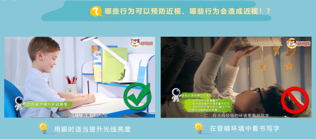 原来,长时间在昏暗的环境中使用电子产品是造成近视的重要原因之一。这也给在场的爸爸妈妈一个提醒,不要忽视自己的行为对孩子的影响。