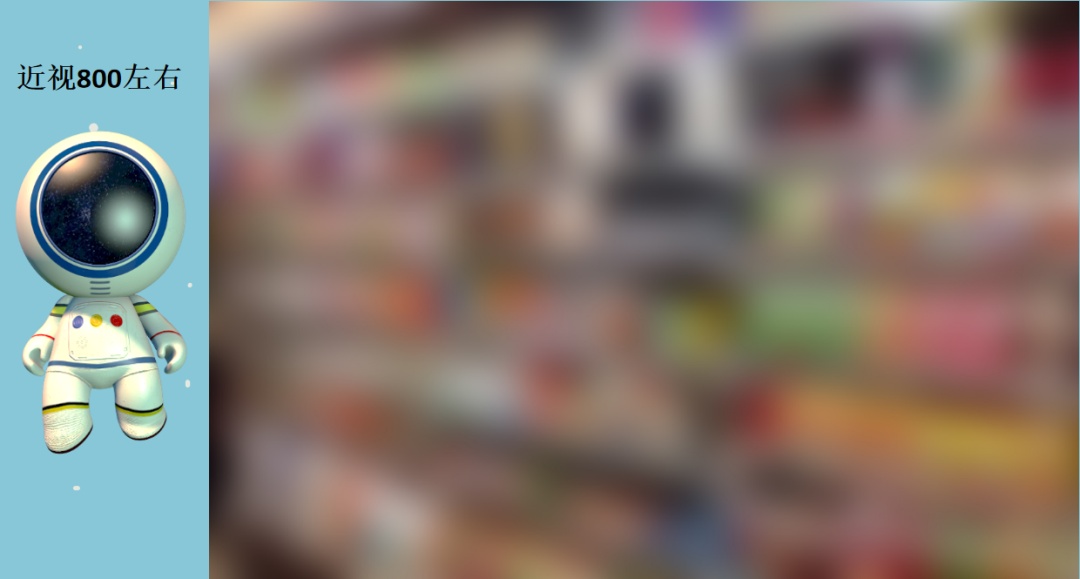 活动一开始,嘉宾虹猫老师就统计了现场有多少父母是戴眼镜的,结果90%的父母都是近视眼。虹猫老师向大家展示了正常视力和近视100度、300度、600度、800度看到的画面对比。当看到800度看出去一片模糊的画面时,孩子们都惊呆了,原来爸妈不戴眼镜根本看不清自己!