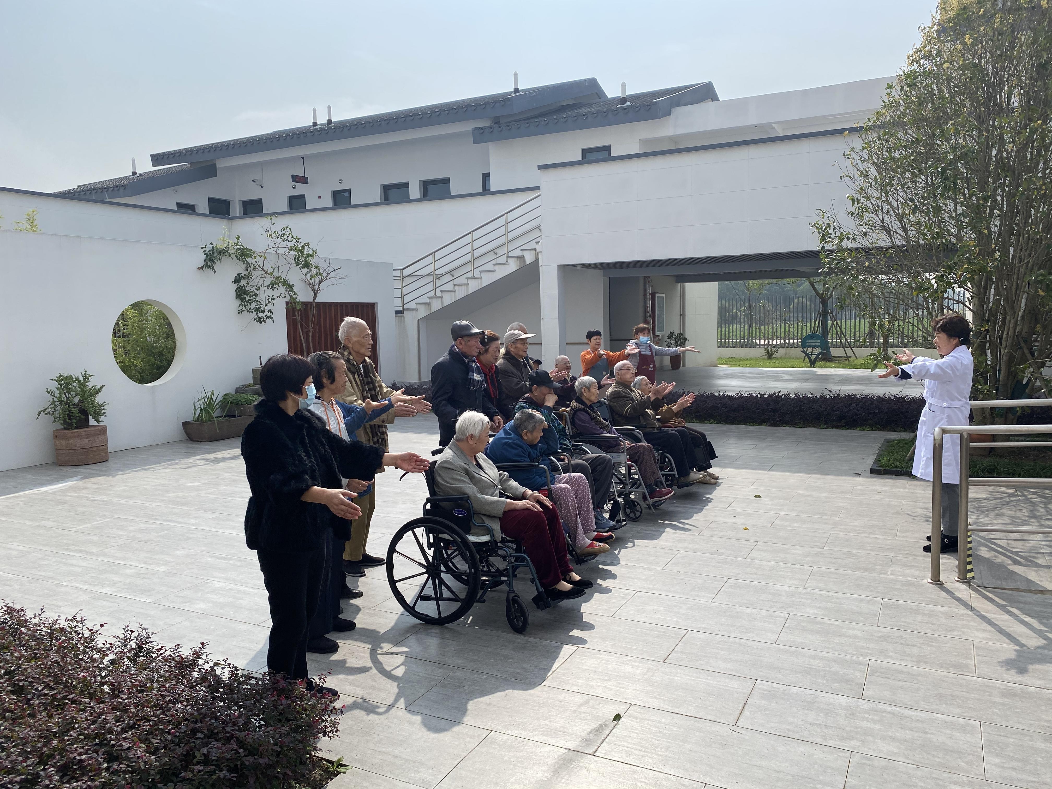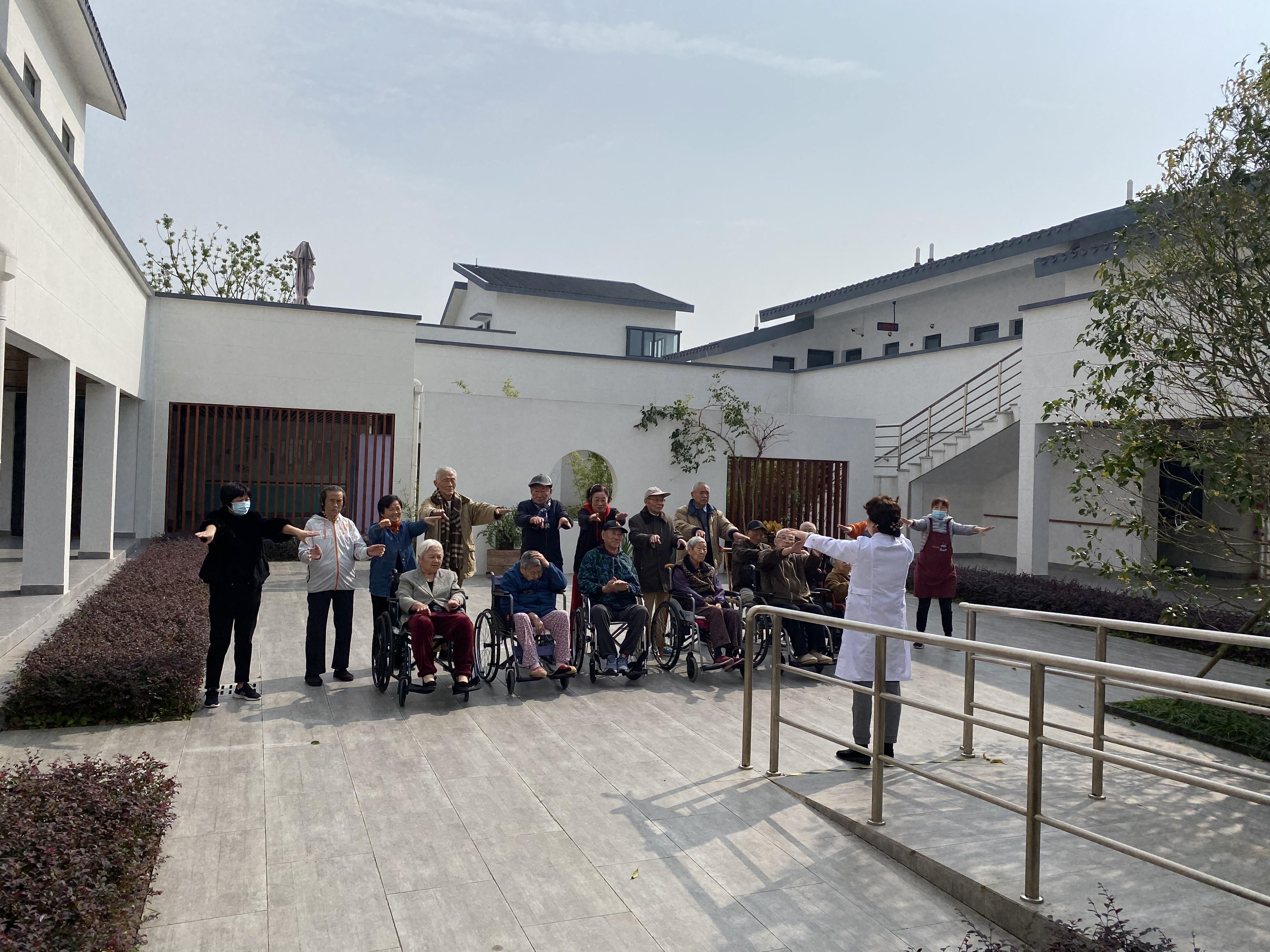 阳光晴好的上午,在五宅村青春里养老社区,30多位老年人在工作人员的辅助下,陆续来到户外庭院,一边晒太阳,一边嘎讪胡。等到大家都到齐了,工作人员还会带着爷爷奶奶们一起做手指操,进行充分的活动。80岁的沈信德来自静安区,他是来养老社区探望朋友的时候决定也搬来居住。他觉得这里环境不错,空气好,又安静,每天和老友聊天下棋,日子倒也简单快乐。