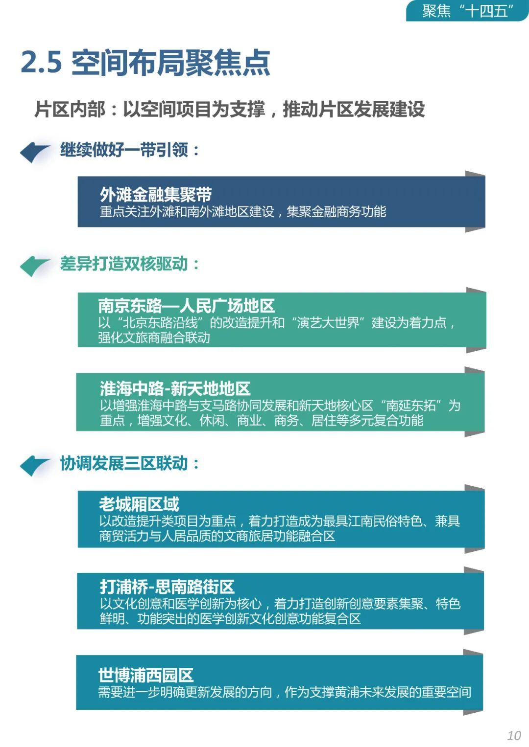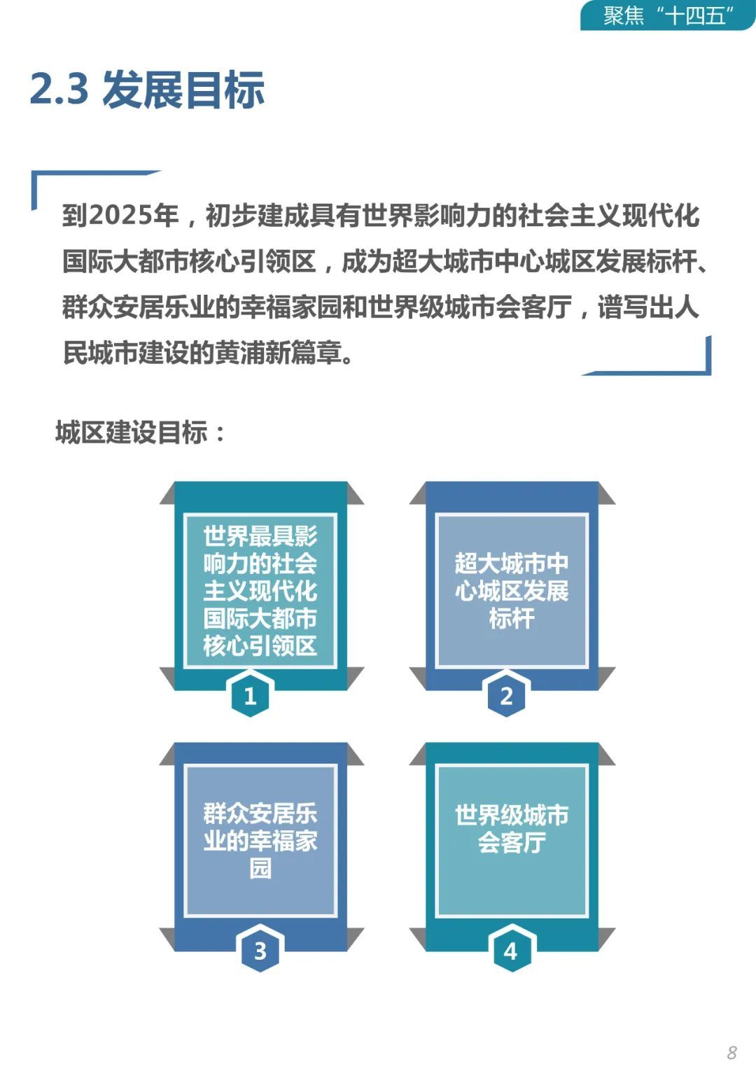 未来五年,黄浦区将聚焦城市“心脏、窗口、名片”总体定位和“功能新高峰、品质新标杆”的发展主线,服务上海国际经济、金融、贸易、航运、科技创新“五个中心”,和具有世界影响力的社会主义现代化国际大都市建设大局,构建大力发展以金融服务为核心、商贸服务和专业服务为优势的三大千亿级产业,加速发展以文旅服务、健康服务和科创服务为新动能的三大百亿级产业,积极布局未来潜力产业的“3+3+X”高端服务业发展体系;占据产业链、价值链、创新链、人才链、服务链的更多高端、高效、高附加值环节,持续提升城区能级和核心竞争力,更好地服务新发展格局,打造配置全球资源、引领区域发展的心脏,彰显中国气派、弘扬城市精神的窗口,追求精细治理、诠释美好生活的名片,在全面建设社会主义现代化国家新征程中奋勇争先、走在前列。
