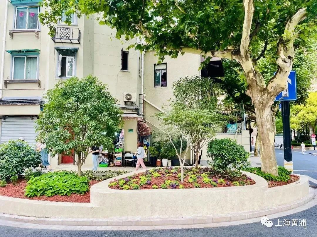 南昌路雁荡路的转角绿地拥有精致的花坛花境、细腻的表面装饰。