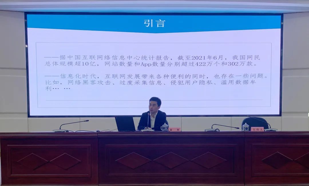 讲座系统、全面梳理了我国现行网络安全、数据安全、信息保护相关法律法规建设情况,对《网络安全法》,特别是《个人信息保护法》作了解读,解读理论和实际案例相结合,分析深入,释法透彻,深入浅出,通俗易懂,为进一步增强民防系统干部的网络安全意识,提高个人信息保护能力提供了重要指导和帮助。