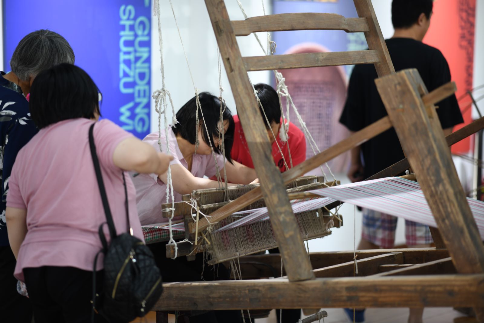 位于竹亭路141号的叶榭镇非物质文化遗产体验馆就在这样的背景下应运而生。该体验馆是叶榭镇于2020年建造的文化新地标,建筑面积达170余平方米,共分为非遗小剧场、八大非遗项目展示区、筘布竹编展示区和非遗活动体验区四个功能区,全面展示着叶榭镇厚重的非遗文化。体验是该馆的核心。在这里,体验者可以跟随老手艺人脚踏木制织机飞纱走线,用双手匠心编出竹篾间的万千世界,学习叶榭软糕、张泽青龙饺的制作工艺和烹饪技巧,尝试扎染、香囊制作、中式团扇制作等优秀传统文化项目。这些体验项目不仅让原本陈列在橱窗或局限在作坊里的手艺更“接地气”了,而且进一步拉近了非遗和年轻人的距离,从今年6月开馆至今,体验馆已吸引近400人前来体验学习。