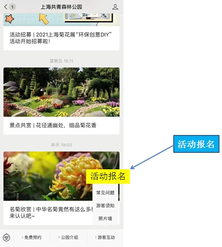 2.进入“上海共青森林公园”官方微信号后台参与报名。