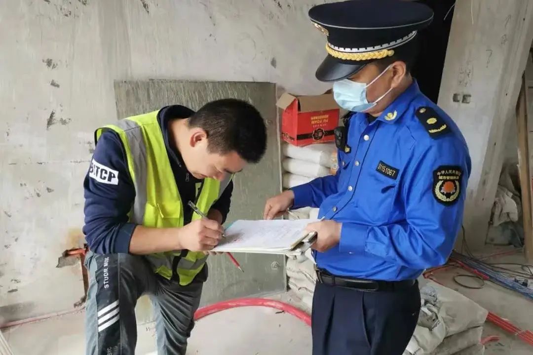 执法队员要求装修人员立即停止施工,并当场向业主进行普法宣讲,告知他未申报登记进行住宅室内装饰装修活动的行为违反了《住宅室内装饰装修管理办法》的规定,属于未申报登记进行住宅室内装饰装修活动的违法行为。当事人意识到问题后表示会尽快去补办装修备案手续,并愿意接受处罚。