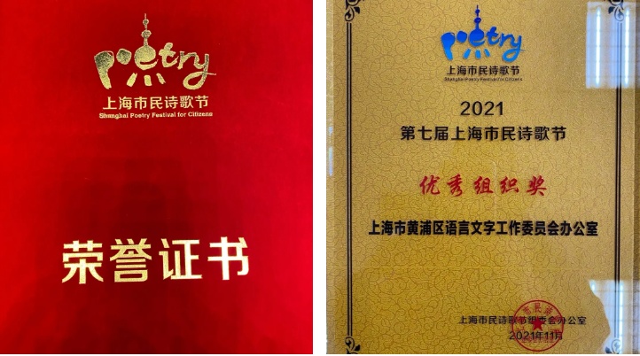 在日前举办的“奋斗百年路,启航新征程”第七届上海市民诗歌节·诗歌盛典上,黄浦区语言文字工作委员会办公室等17家单位获得此次诗歌节的“优秀组织奖”。