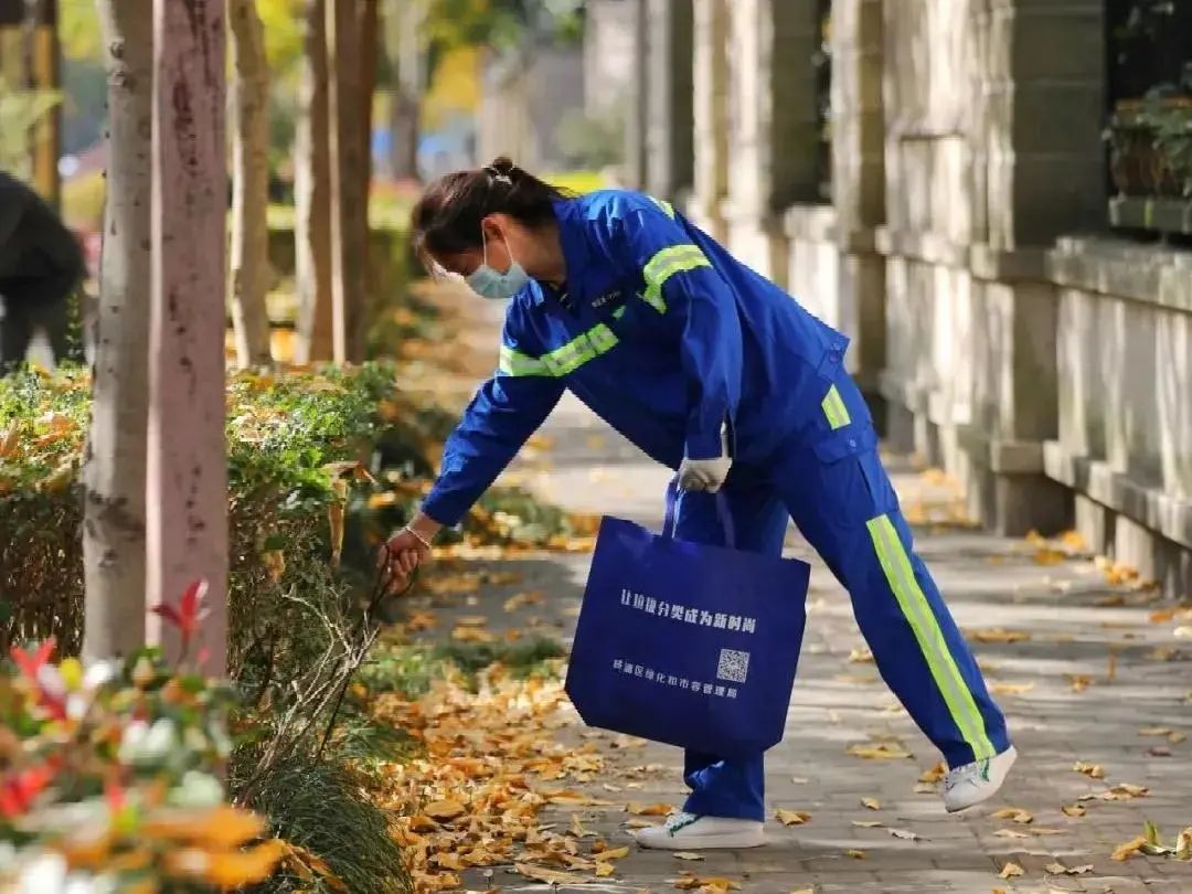 落叶不扫并非完全不扫,而是需要更精细化的保洁水平。环卫工人每天要对落叶景观道进行捡拾保洁,清除隐匿在落叶中的垃圾,只留下干净的落叶供路人欣赏。