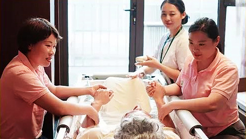 洗浴完成之后,助浴师会细心地帮助老人穿衣同时会小心谨慎地将老人再次转移到卧室床上。然后为老人吹头发,修理脚指甲。最后还会为老人测量一次体温和血压,全程贴心服务,就像对待孩子一样。