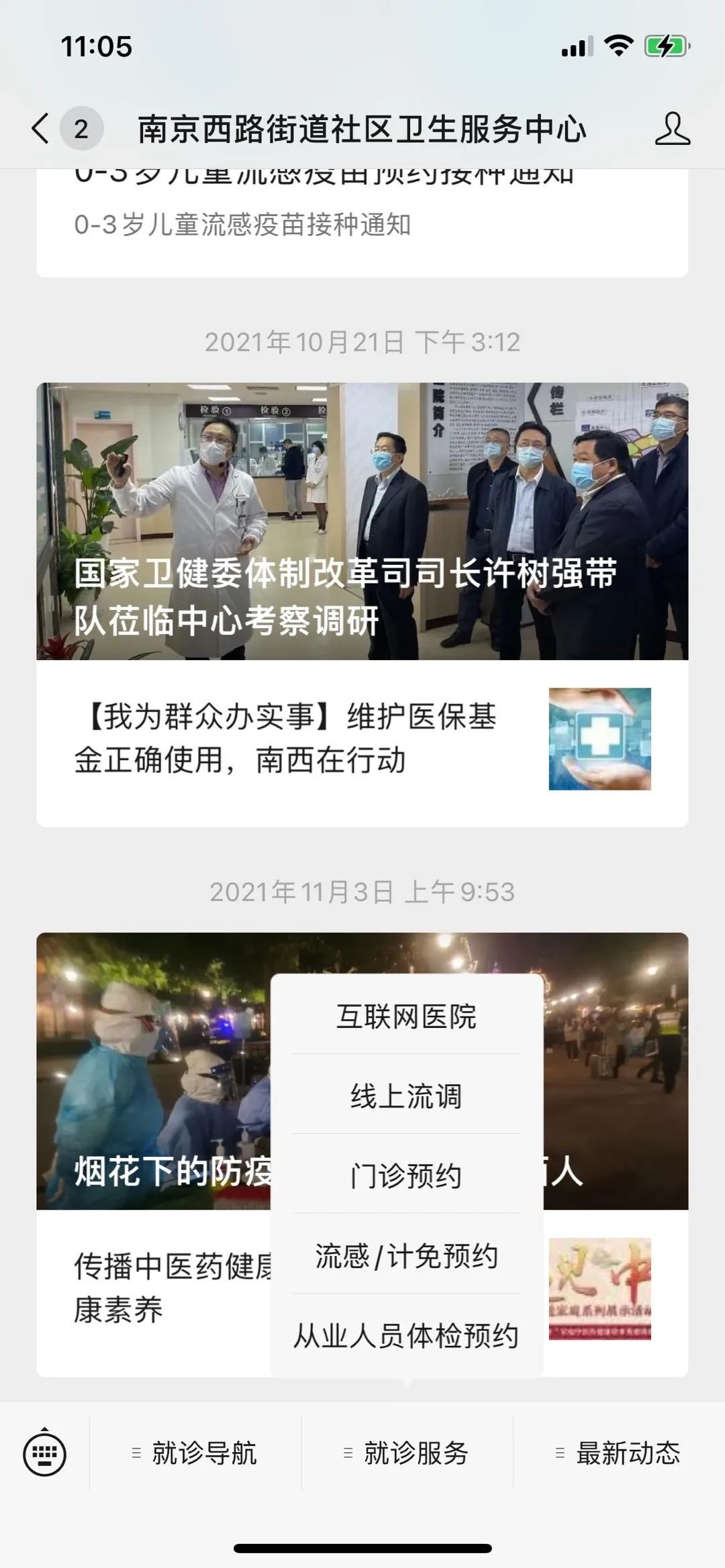 打开手机搜索“健康静安”微信公众号,点击“就医服务”进入“健康静安”平台预约。