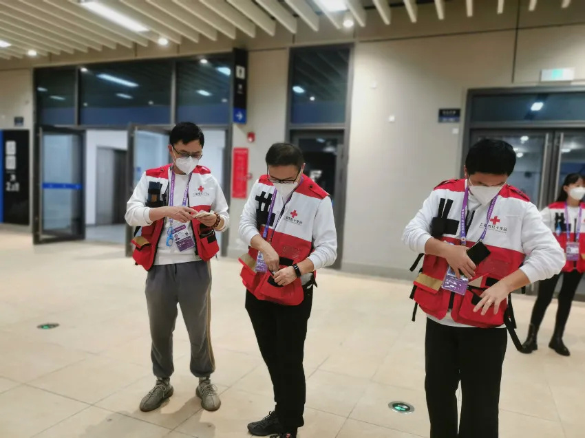 第一班固定岗上岗后,首先要去检查AED是否完好,小应急包内物资是否齐全。随后,就是和同组的小伙伴开启循环“徒步”模式,在场馆内主干道来回巡视。