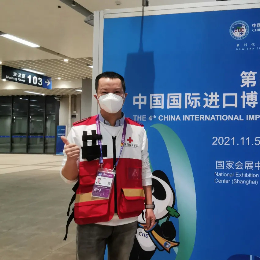 张雷:怀着激动又好奇的心情第一次参加进博会志愿服务活动,看着世界各国各企业各品牌各具特色的展品在进博会的平台上展示,我由衷感受到祖国的飞速发展,繁荣昌盛!更加坚定了做好进博红十字志愿者的决心!
