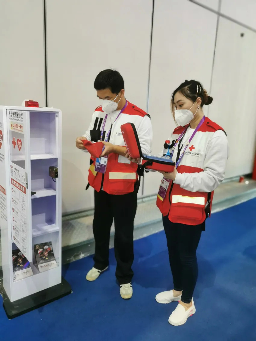 许天瀚:作为一名参加进博会服务三年的老队员,看着进博会越办越好、越办越精彩,我为祖国的强大和进步感到无比自豪。作为一名党员,我能够参与其中,心中感到责任重大,就想着一定要做好医疗保障,更好地宣传红十字精神!