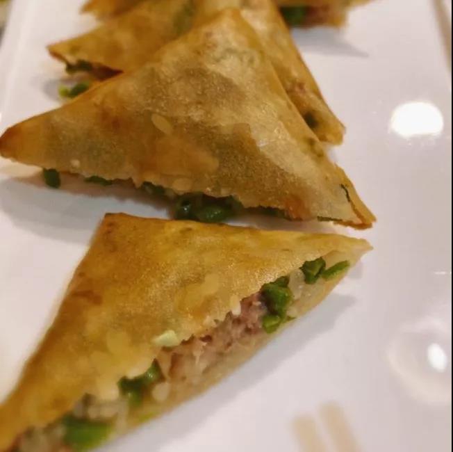 豇豆饼香酥可口,味道纯正。只见师傅取一份面团,用之包好豇豆,再用用擀面杖擀薄,取平底锅放少许植物油,煎至两面金黄,诱人的色泽,让人垂涎欲滴。
