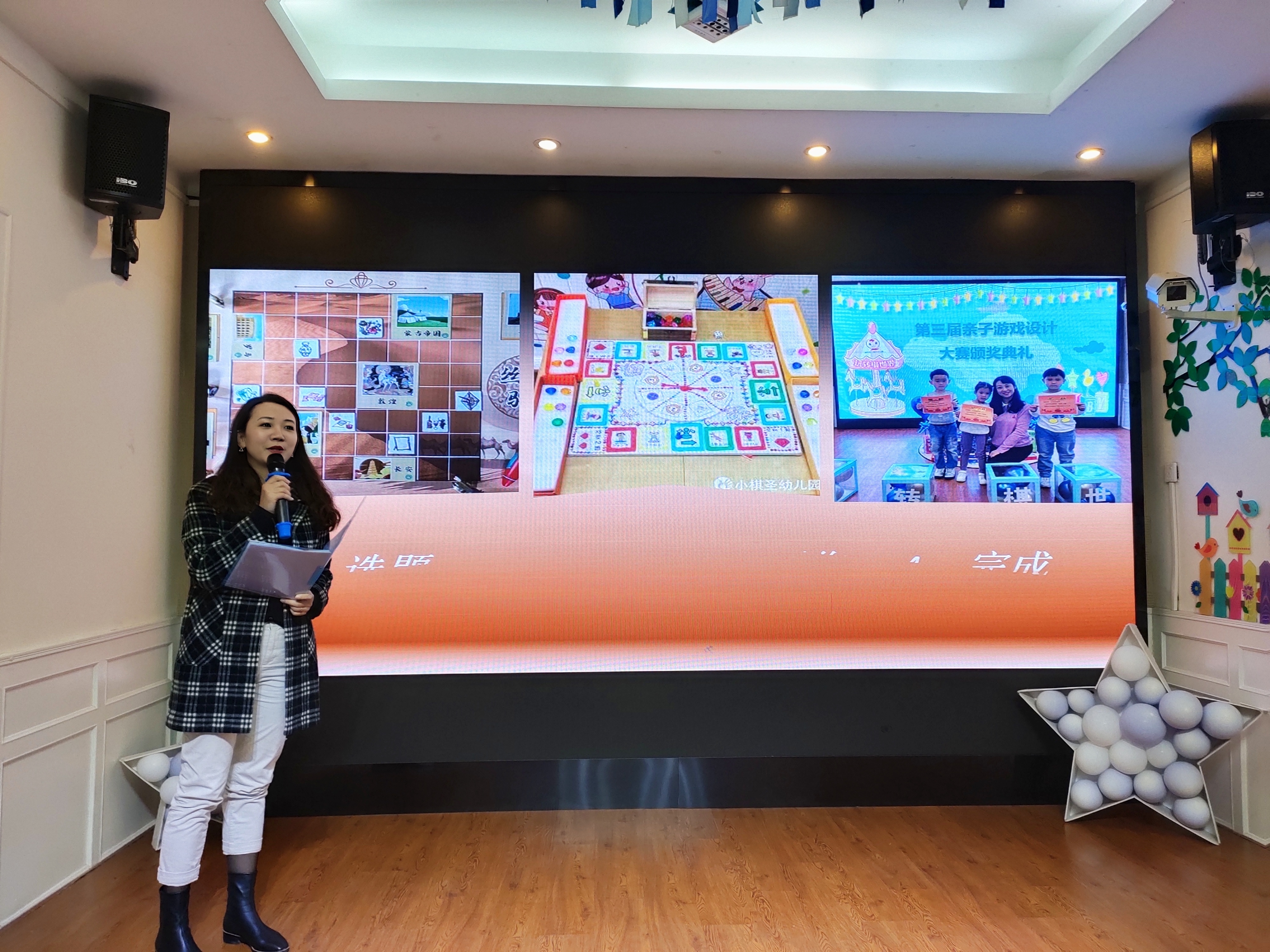 t在今年的亲子游戏棋设计大赛上,幼儿园还组织家长们带领孩子用他们设计的游戏棋,在“棋乐市集”上进行表演、展示,并接受全园家长和孩子和评比。最终,由5位家庭创作的亲子游戏棋进入决赛,接受专业人士的评判。