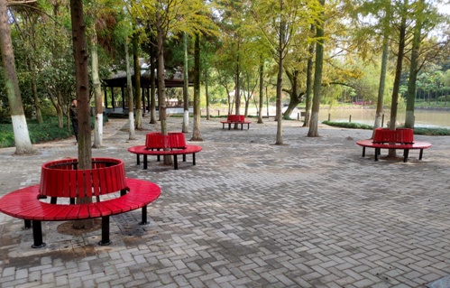 瀛洲公园1985年建成至今,因为年代久远,继上次老公园升级改造已经过去十多年了,许多设施陈旧、老化。近日,区绿化管理所对园内棋牌区老旧座椅进行了改造。将沧浪亭西侧破旧方形桌拆除后,新增4个环形背靠式座椅,不仅能容纳多人休憩娱乐,同时也为晨练的市民留出更多的运动健身空间。