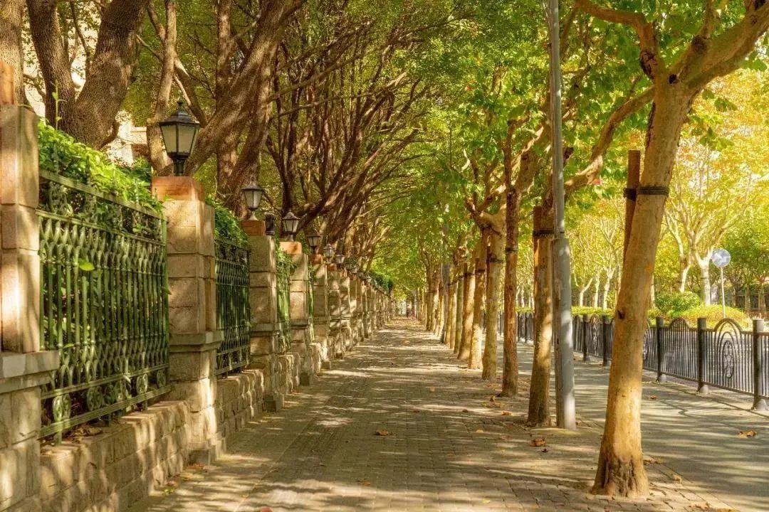 各类花园洋房与沿途的梧桐树,