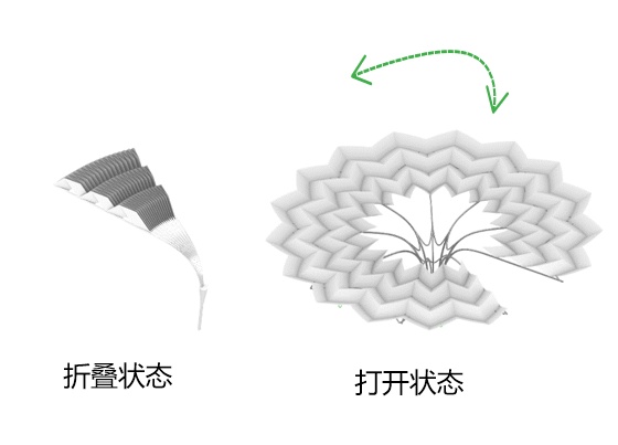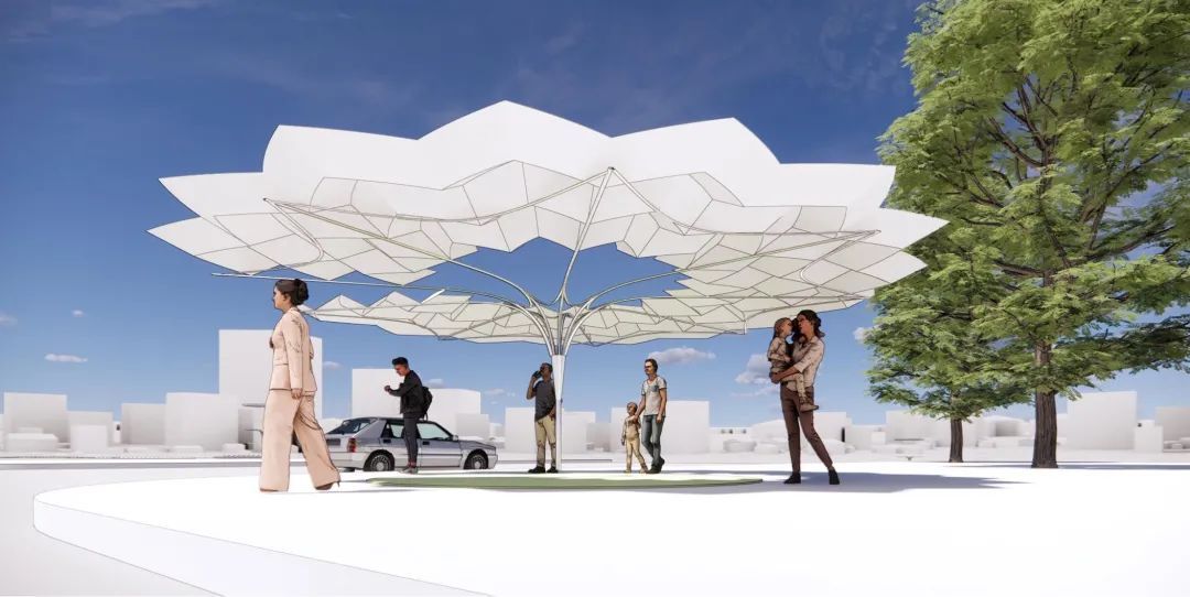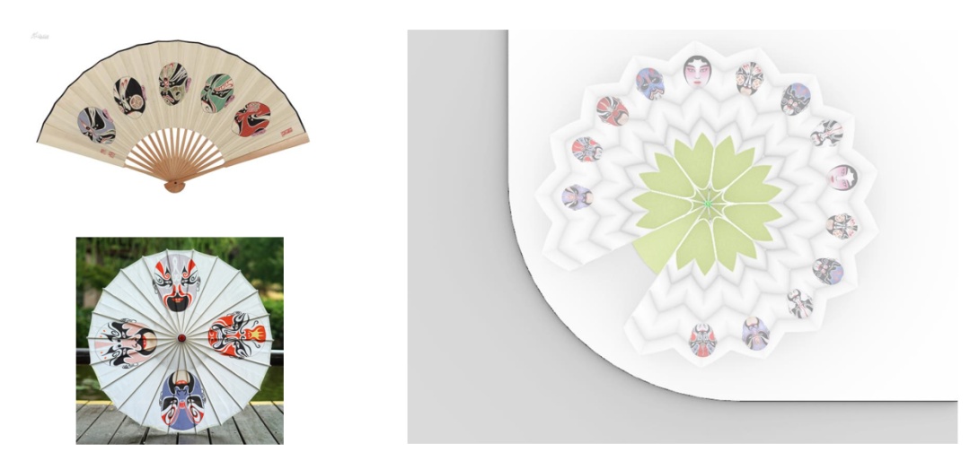 设计将戏剧文化的折扇和脸谱巧妙结合,将非遗文化的符号点缀到上海的大街小巷中,为大众带来独特的实用又高雅的文化体验。折扇可结合气候和时间实现收放,满足不同的使用需求,带来极大的灵活性和适应性。同时扇面上的文化符号也可以结合地域特色进行变化。