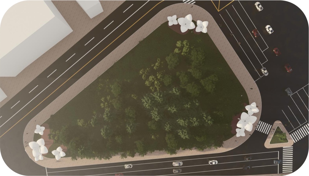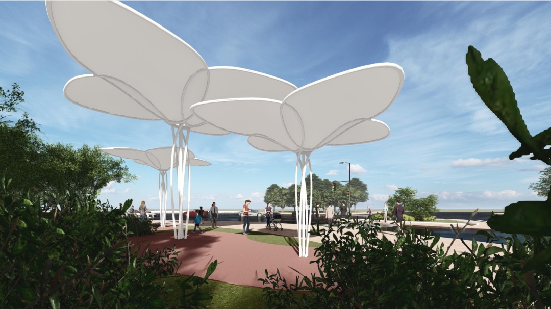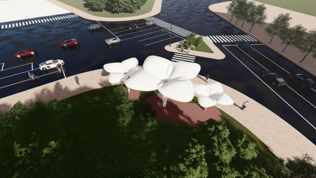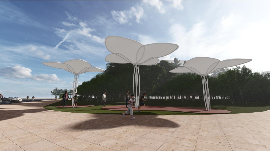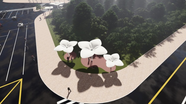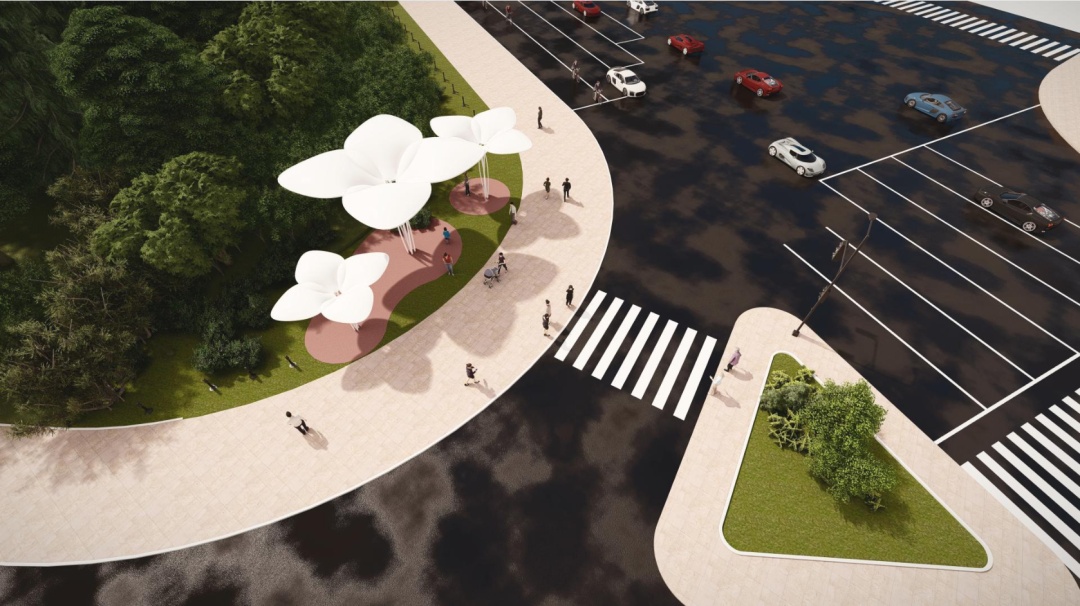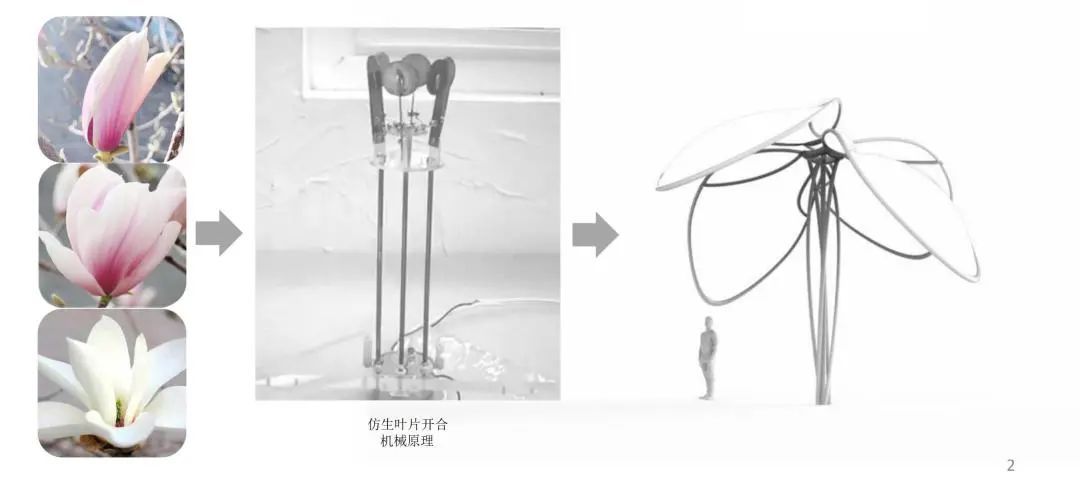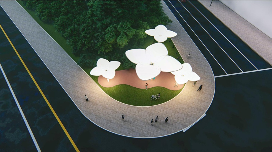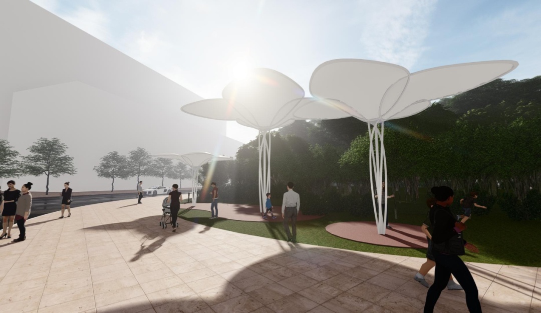 以市花白玉兰为灵感,玉兰花瓣为设计元素,加入遮阳棚的设计,在达到功能性的同时突出艺术感,并为上海的公共空间增色。