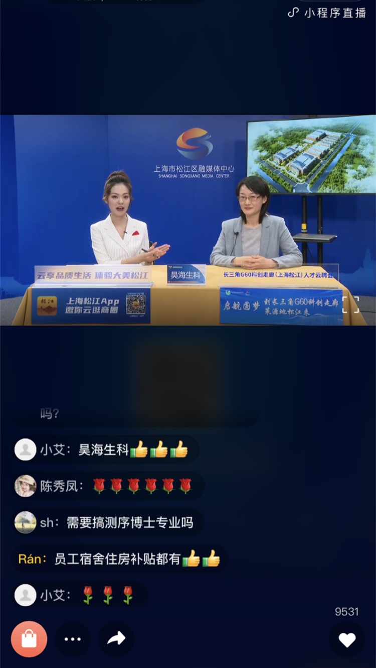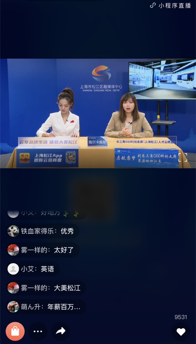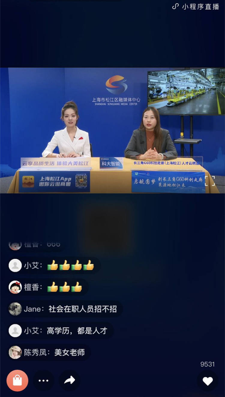 11月12日晚,松江区委组织部、区人力资源和社会保障局以及区融媒体中心合作举办“启航圆梦——到长三角G60科创走廊策源地松江来”人才云聘会。云聘会以直播带岗的方式推介了长三角G60科创走廊企业的优质工作岗位,为企业和求职者搭建起了交流互动的平台,吸引了不少网友的关注。