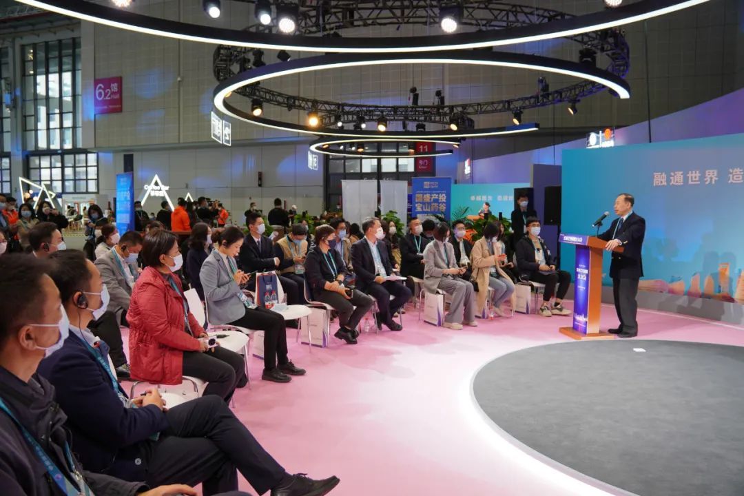 相较往年,今年进博会的贸易投资对接会新设了投资推介区。开放宽敞的空间,搭配上PPT讲演,极易给人一种“路演”的错觉。其区别在于,过去主讲者是企业,而如今要上台的则是政府部门、产业园区。宝山也有幸参与其中。