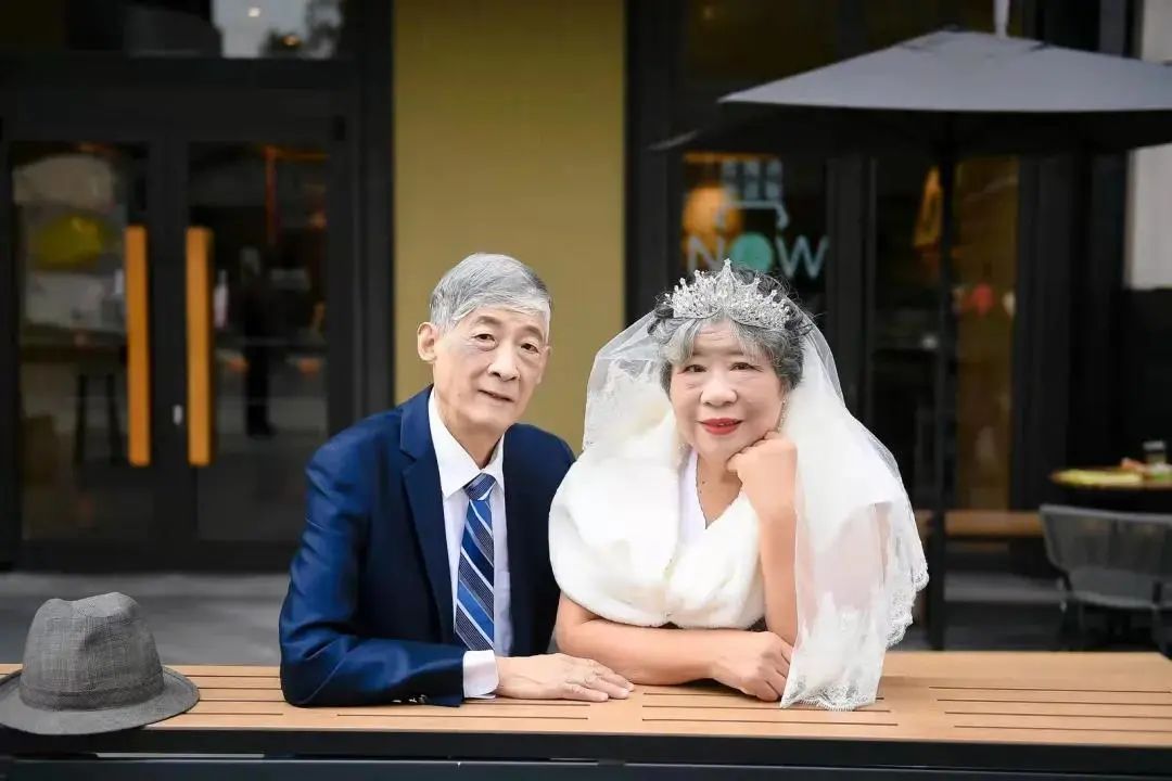 补光灯亮起,摄影师确认了画面,按下快门,影像在这一刻定格,陈军瑜夫妇拥有了结婚近50年来的第一张婚纱照。