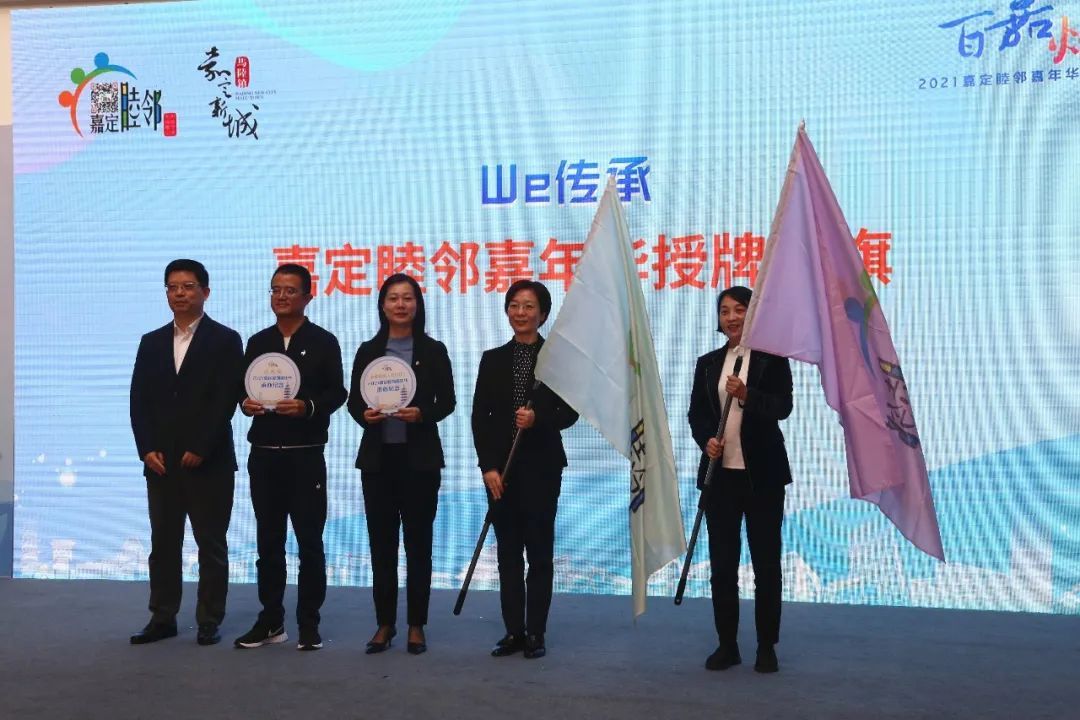 活动上,嘉定区委常委、副区长朱效洁为举办2021嘉定睦邻嘉年华开闭幕式街镇的相关负责人授牌,同时为明年举办开闭幕式街镇的相关负责人授旗。
