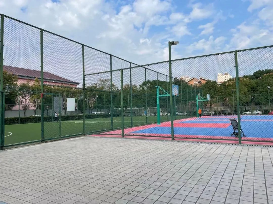 东南部自南至北依次建有1个门球场、2个标准化篮球场和1个中型规模足球场,是球类爱好者的活动场所。