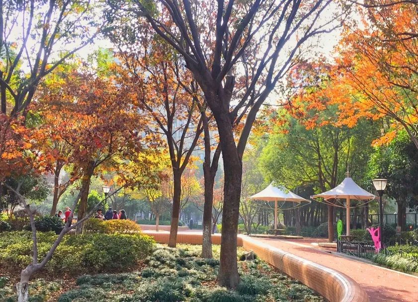 曾经的大片违建厂房区域,现在已变为了环境优美、干净整洁、秋意盎然的小游园。