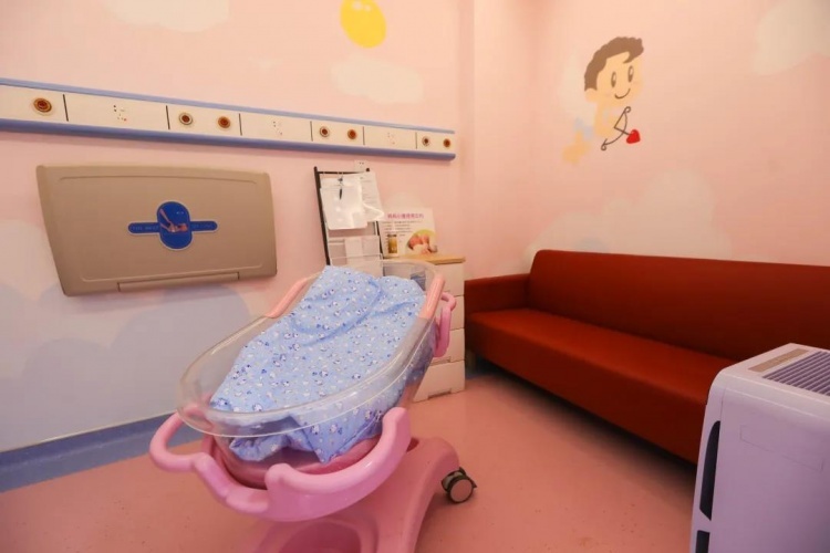 儿科门诊内还设有母婴室,尿布台、婴儿床等设施一应俱全。