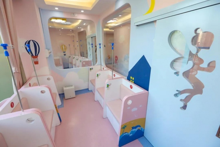 儿科门诊内,雾化室、补液室窗明几净,通透敞亮。雾化室特别设置了新风系统,前来就诊的孩子可以在清新的空气中一边做雾化,一边看动漫节目。补液室有两间,儿科主任徐健介绍,“其中一间是给呼吸道感染的孩子补液的,这样能够避免交叉感染。”