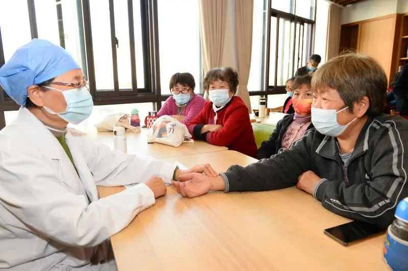 除了增强老年居民的科普知识之外,在大宁路街道长者照护之家,专业人员则为入住老人开展了一对一义诊服务,提供针对性的糖尿病管理方案。