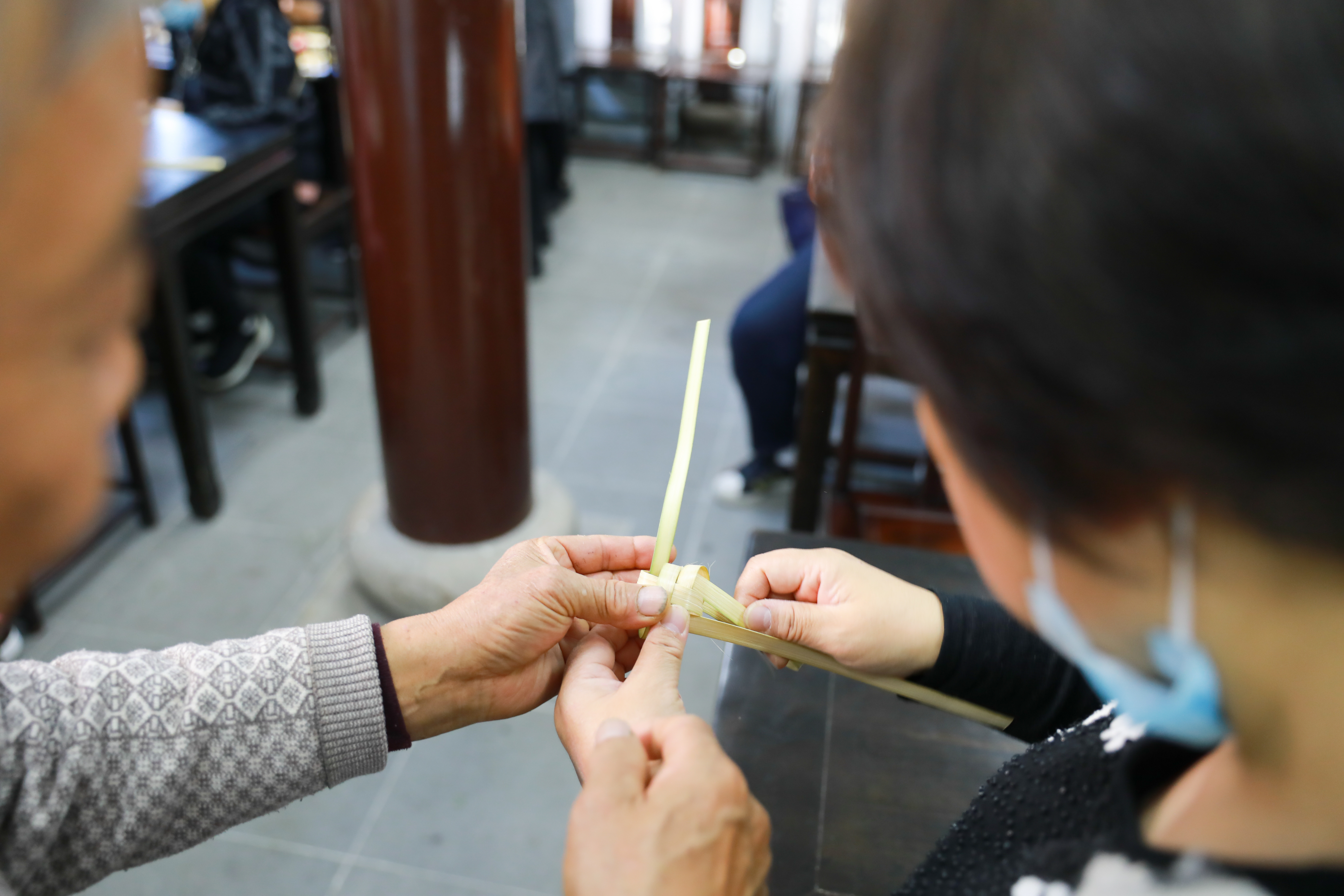 11月14日下午,作为今年第九期“非遗进公园·寻踪拾遗”活动,岳阳街道社区文化活动中心邀请叶榭竹编非遗传承人唐正龙、何新良,在醉白池讲堂开展“交错编织间的美”竹编艺术体验活动。