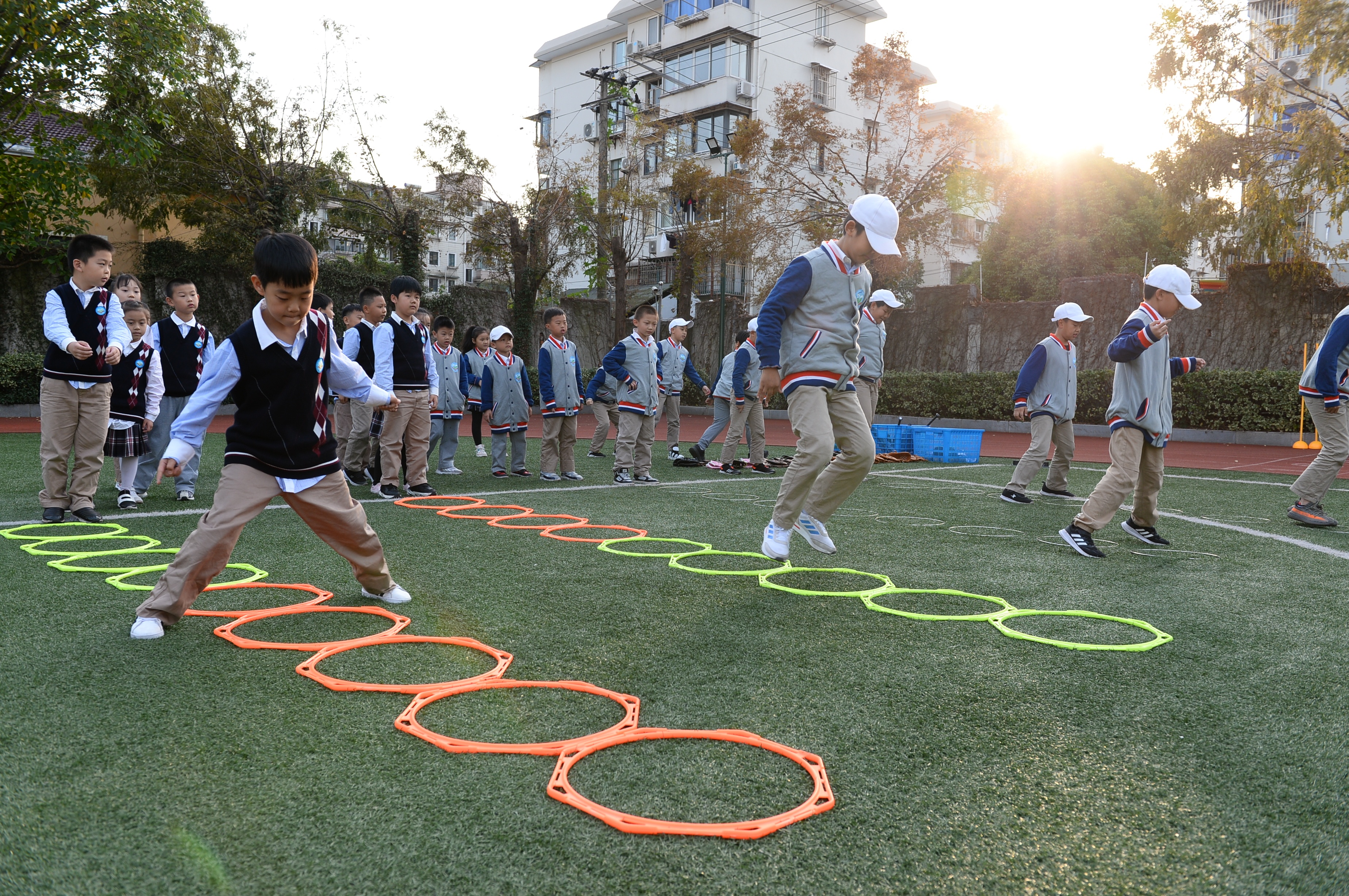 t该校体育运动搞得热火朝天,数百名孩子每天尽情地活跃在运动场上,他们用大量事实证明,参加体育活动丝毫没有耽误学习。