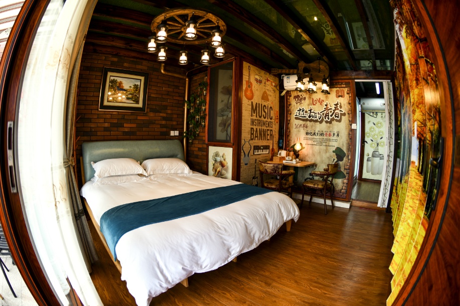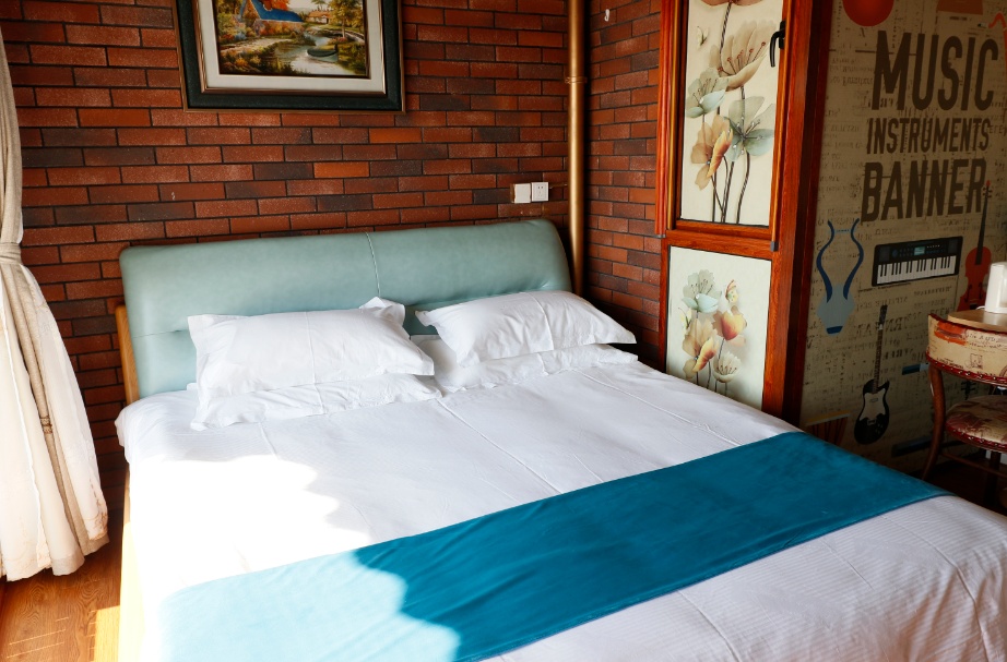 民宿的每个房间里都能看到音乐的元素,你可以听着音乐入眠。民宿共有10间房,房间名称都和音乐有关,如:绘声,无闻、可闻、 聆音、弦音、大音等。每一个名字都仿佛装着主人对音乐的热爱。客房的床上用品、卫浴皆选用高档品牌,保证入住的舒适性,床头还特别放置了立体音响,可以在曼妙的音乐声中,抿一口茶香或配一点红酒,音乐入酒醉在心头。
