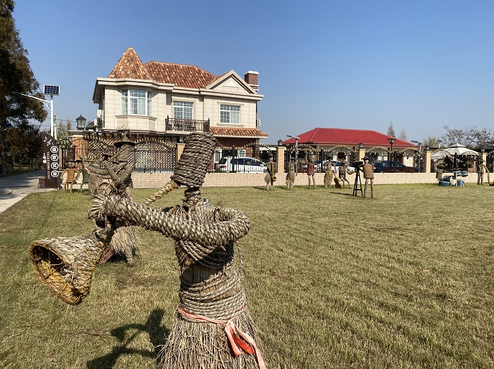 谣歌是一家以乡村音乐为主题的“五星”民宿,18年开始营业至今,去年民宿主人将民宿在原有基础上进行了翻新与改造。增加了休闲区域、游船,以及屋前那一片大草坪,草坪上还有稻草人,在民宿的不远处还增加了一片自用的菜地,供前来旅游居住的市民游客尝“鲜”。