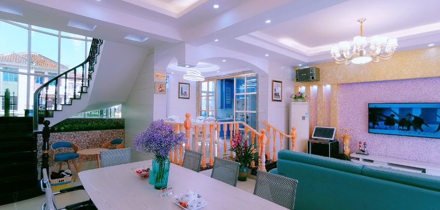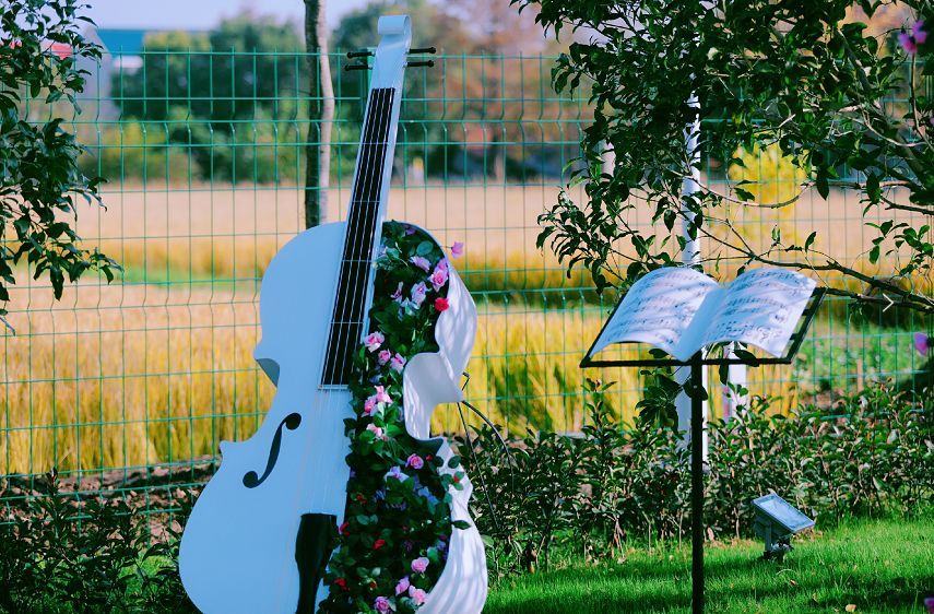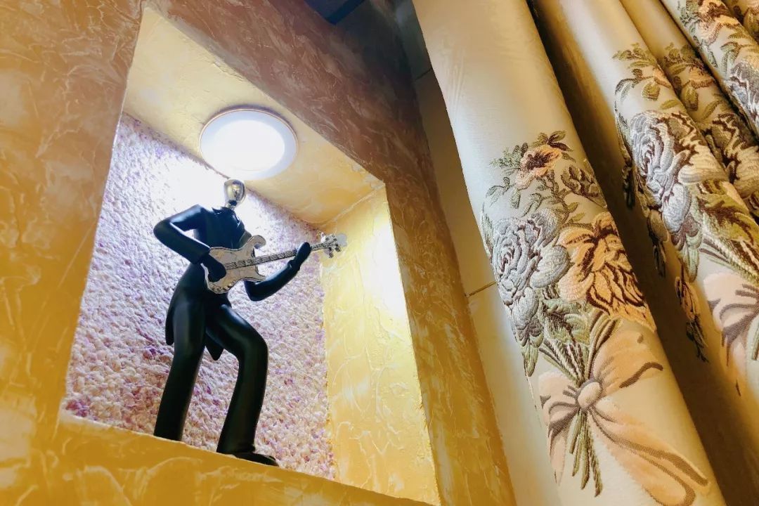 说起民宿为何以“音乐”为主题,是因为民宿男女主人的奇妙缘分,女主人与丈夫的结识也是因为音乐,曾经创立了申岛艺术团,并带领团员在外演出20多年,经历了坎坷和心酸,也拥有很多好的作品和演出经验,曾出演的纪录片《后台》在上海电视台播出。因为曾经在外演出的一场意外,加上崇明举办花博会的契机,让她和丈夫决心不再在外漂泊,回到家乡崇明创业,2016年开始,花了近两年时间装修打造自己崇明的旧居,用自己对于艺术的独到见解,对于音乐的喜爱,将这些元素融入到了自己的音乐民宿中,创立了现今的谣歌民宿。