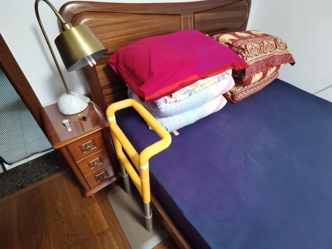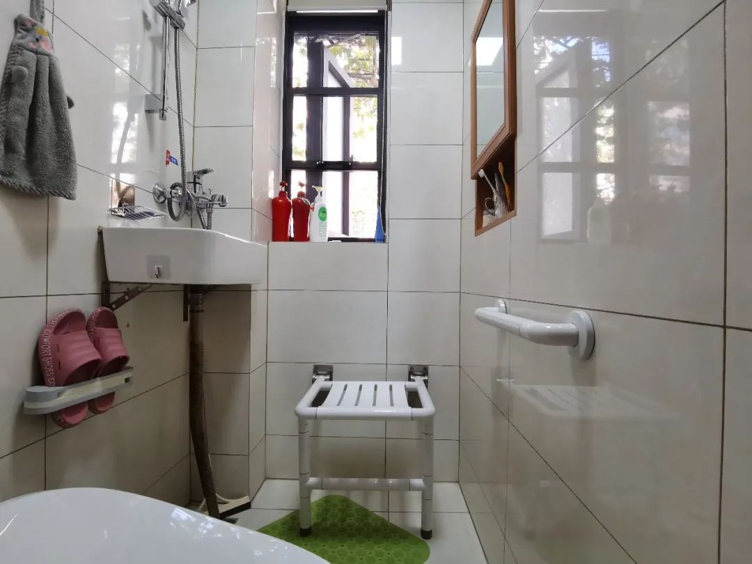 在郑阿婆的卫生间里,不仅安装了扶手、折叠座椅,还铺上了防滑垫,配备有助浴椅,防护措施十分周到。而在卧室床边,则装上了坚固、颜色鲜艳的扶手。“很不错,每天起床拉着它,起身非常轻松。扶手当中还有一圈夜光灯呢。”对于家中这些小变化,郑阿婆赞不绝口。