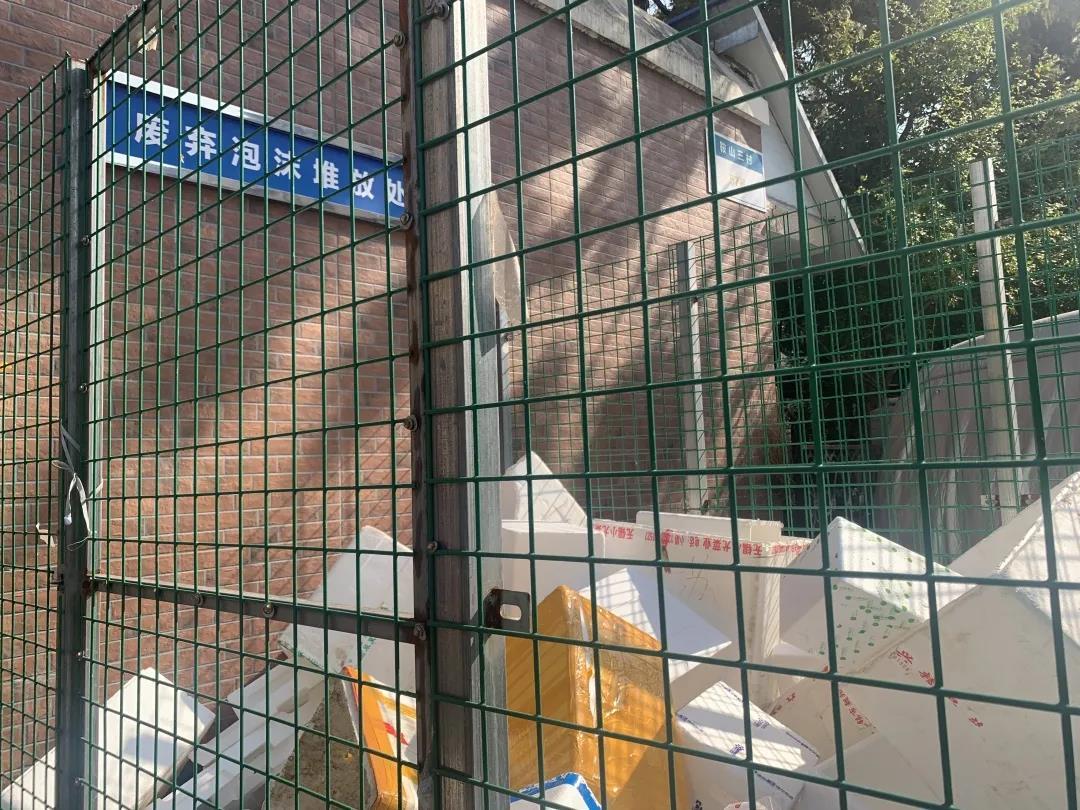 针对这一问题,2019年,鞍山三村居民区的居委会工作人员走访了多个其他居民区和公共场所,研究其对废弃泡沫塑料的管理方式,最终摸索出了“用铁丝网搭建一个临时堆放点”的想法。经过切实实践下来,这个小小的“铁丝房”也着实帮了不少忙,收获居民们一致好评。