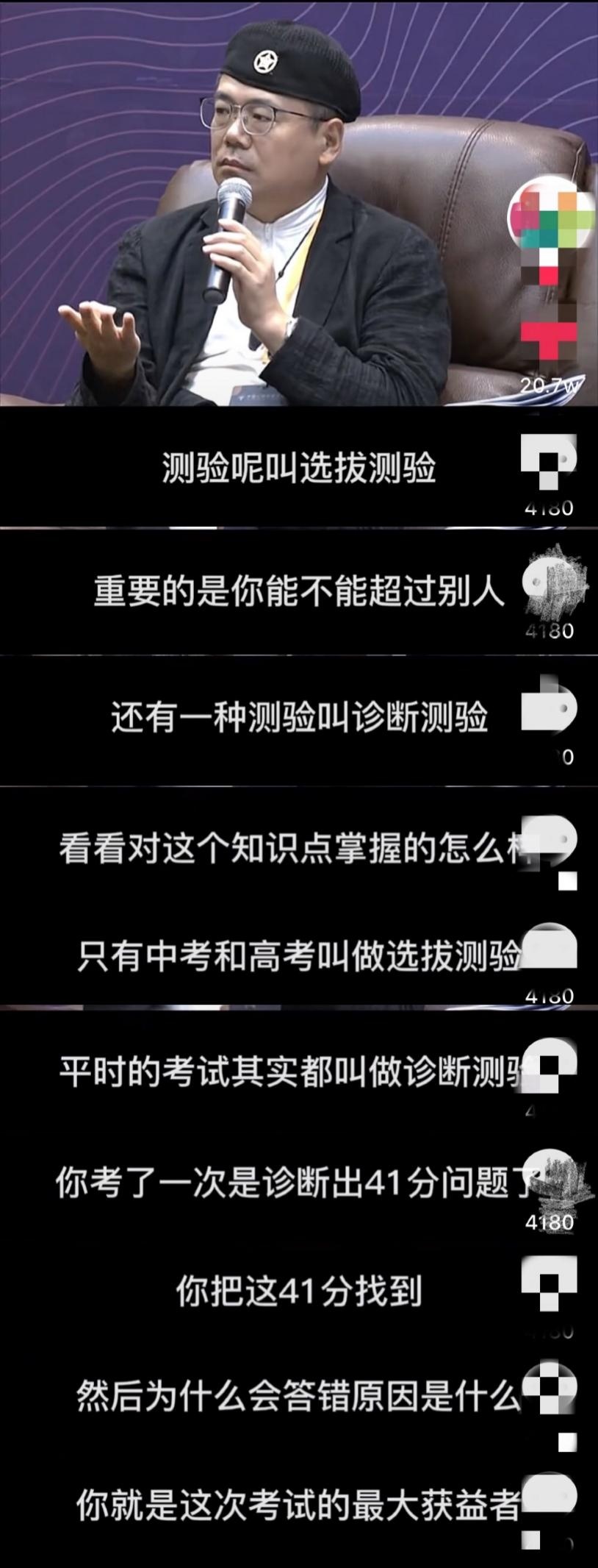 你就不一样了,你诊断出了41分的问题,你把这41分的问题找到、改正,你就是这次考试最大的受益者。”