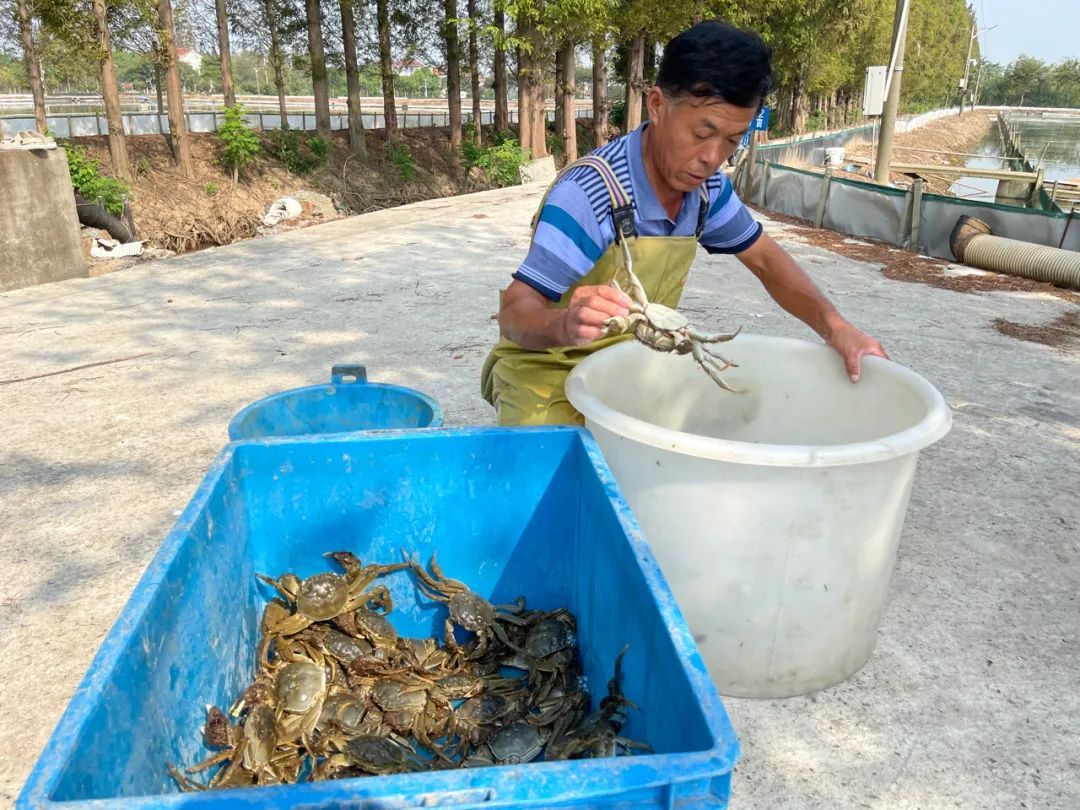 在20多年扣蟹养殖的经验基础上,合作社从2018年起正式进军成蟹养殖,并逐步形成了稳定的养殖规模。以良种配合良法,河蟹产量逐年提高,2020年公蟹和母蟹平均在4.3两左右,产量约110斤/亩。今年合作社经过区镇二级共同打造,成为崇明首个重点水产合作社,首创的立体防鸟设施对产量提升起了关键作用,今年产量有望超过200斤/亩。今年,合作社开展扣蟹池塘“小改大、浅改深”升级改造工程,进一步提升蟹苗质量,提高土地利用率,降低劳动成本,建设现代化设施设备,努力打造成为河蟹养殖示范场,树立崇明水产绿色养殖的标杆与典范。