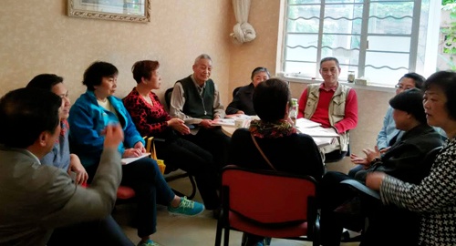 “社情民意气象站”成立后的首批“气象员”基本为居住在纺大居民区且工作在东华大学的教职工,他们与居委会组成社区工作智囊团、决策团,主动下沉到社区参加楼组党员活动,共同商讨社区日后的建设和发展。