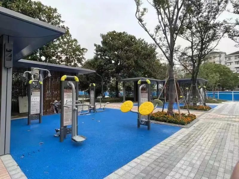 同样新建成的彭浦四季公园健身广场,也让居民可以在“家门口”享受健身锻炼的乐趣。广场中央为一片羽毛球场,4个乒乓球桌一字排列,四周是腰部按摩器、上肢牵引器、太极揉推器等12台健身器材,也有供居民下棋、休闲的桌椅设施。热爱运动的季先生对健身广场赞不绝口:“很多年不打乒乓了,现在有场地,以后我们自己可以搞个社区乒乓球赛。”