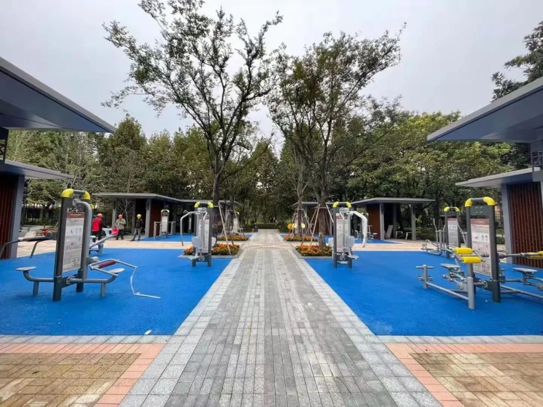 传统器械区主要面向老年人群体,搭配有智能健身设备,通过立柱显示屏实时显示运动数据。智能健身驿站则配置了太阳能感应灯光,方便市民夜间健身。