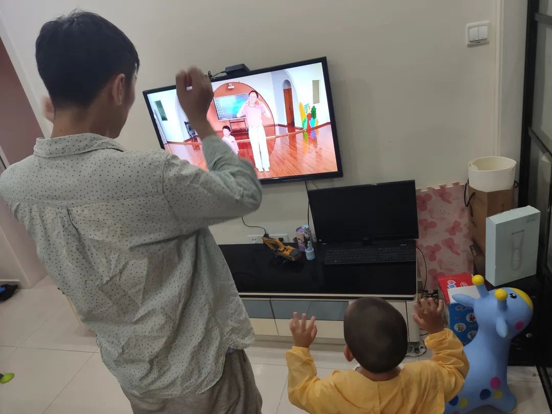 律动动起来,欢乐多又多。幼儿园小班的早操律动《表情游戏》《小花猫》《可爱颂》,动作简单,音乐欢快,深受小朋友们喜爱。俱乐部里的老师将这些律动操录制成亲子操视频,发送给03家庭,让孩子们在家和爸爸妈妈一起跟着视频唱唱跳跳。每次线下活动开始前,孩子、老师、家长一起做操, 活跃氛围。