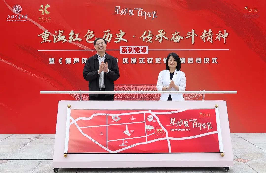 为深入挖掘并以全新形式展现交大深厚的历史文化底蕴,2020年11月,由上海交通大学党委宣传部、文明办联合上海话剧艺术中心共同创作的沉浸式校史情景剧《循声探秘·声动交大》在徐汇校区首次上演,巧妙的声效和音乐设计,结合具有感染力的现场实景表演,生动再现历史的印记,串联起交大历史、人物、建筑、风物,以小见大地展现了党和国家发展历程,成为一堂“行走的思政课”。