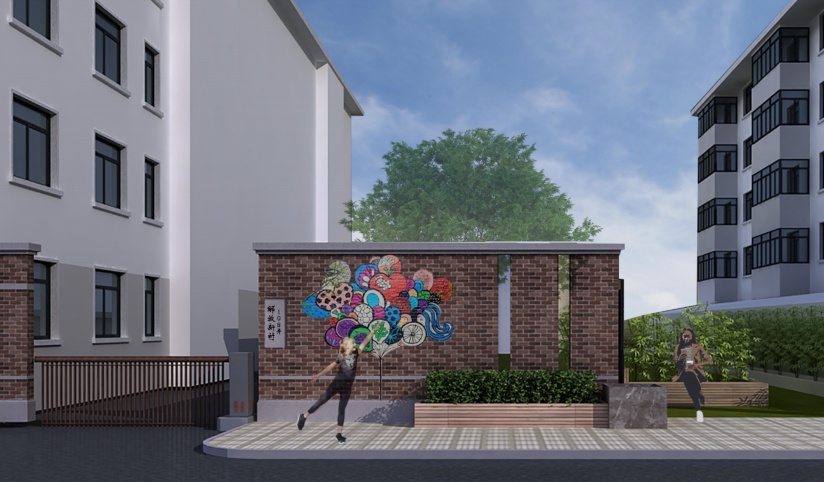 让原本破旧斑驳的小区围墙