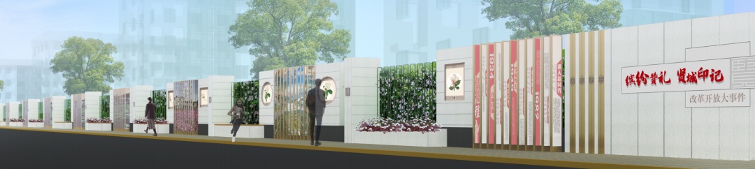 范围路段为G1501至新建西路,全长1900米。其中绿化面积2863㎡,硬质铺装4334㎡。升级改造内容包含沿街景观及店招设计、建筑外立面翻新等方面。